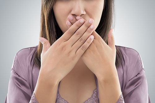 Daily brushing and flossing help to prevent the build-up of food particles, plaque and bacteria in your mouth. Food particles left in the mouth deteriorate and cause bad breath. While certain foods, such as garlic or anchovies, may create temporary bad breath, consistent bad breath may be a sign of gum disease or another dental problem. Make sure to brush your tongue and the roof of your mouth.